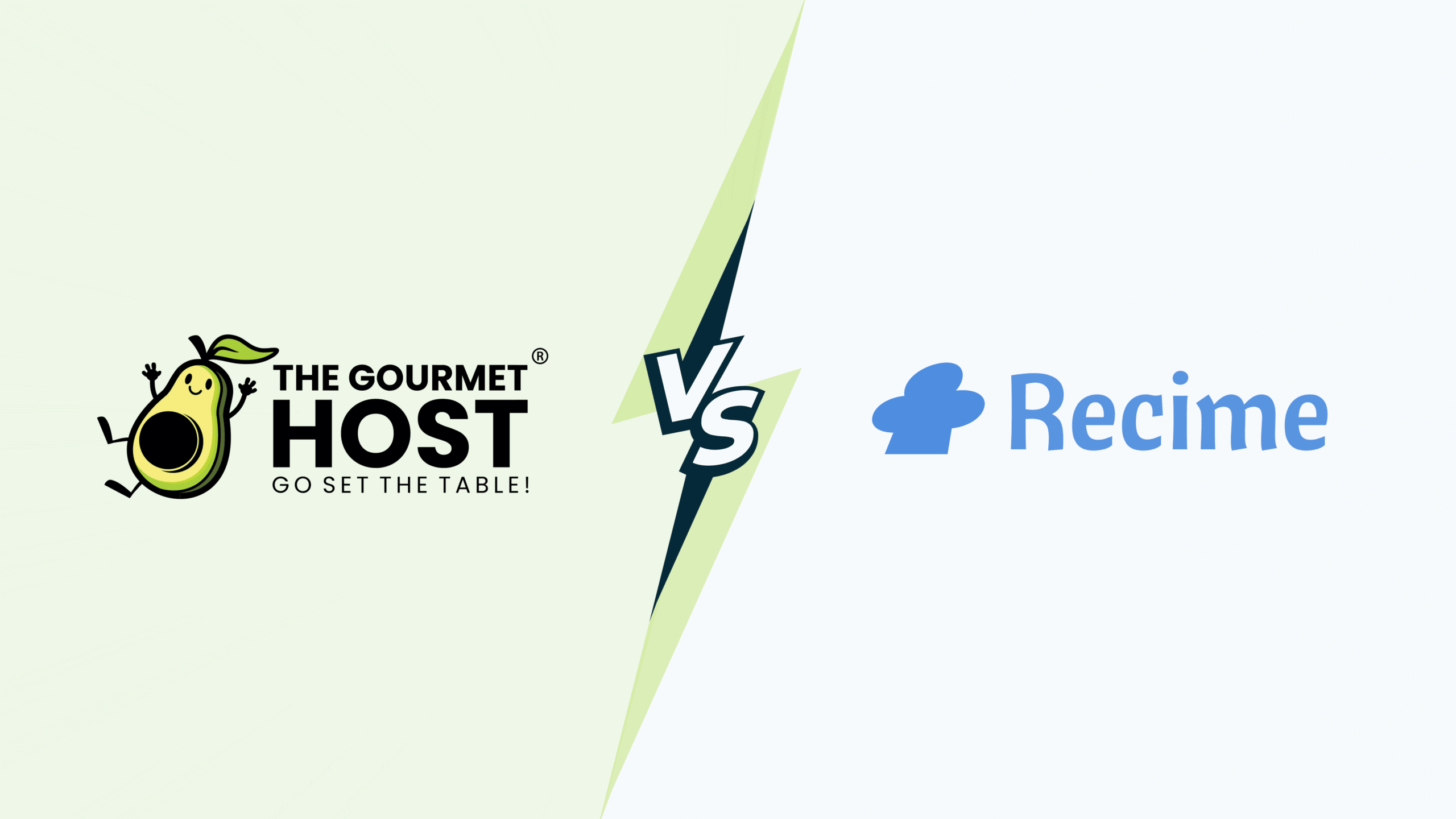 - Pricing — ReciMe offers a free tier (5 recipe imports per week) and Premium at $59.99/year with a 7-day trial. The Gourmet Host offers a free tier with a library of 500+ premium recipes, $4.99/month, or $29.99/year with a 7-day free trial for full features.